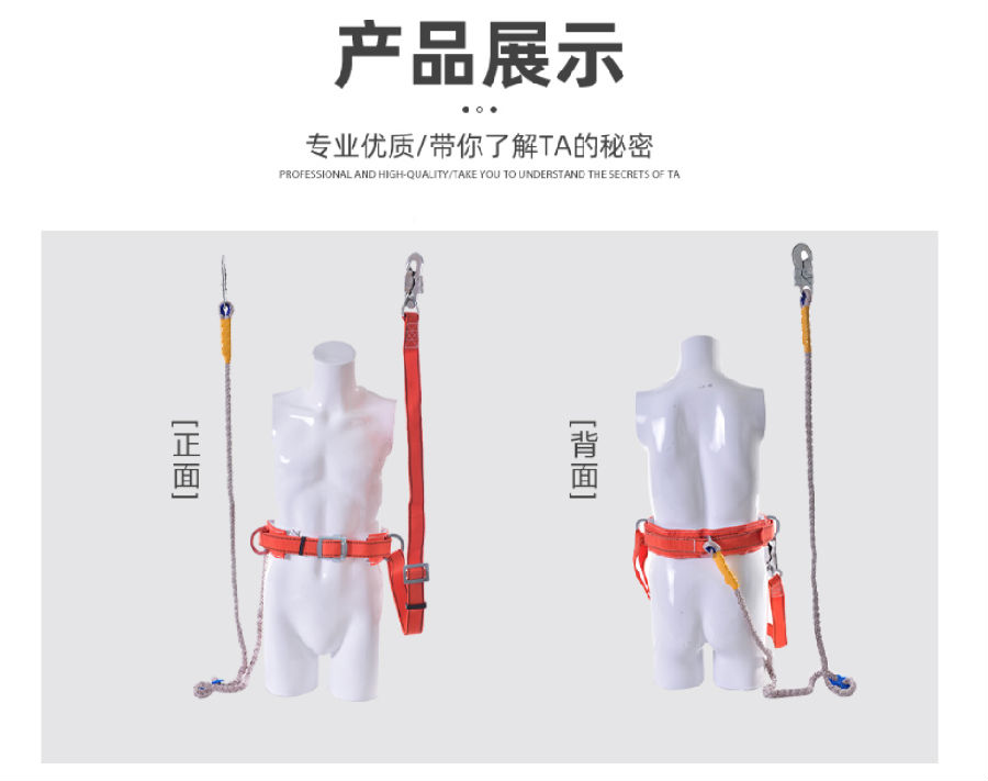 特性:在安全带的所有部件中,安全带和安全绳使用锦纶、维纶、涤纶料制成,金属配件使用普通碳素钢制成;产品具有重量轻、耐、耐腐蚀、吸水率低和耐高温、抗老化等特点。
