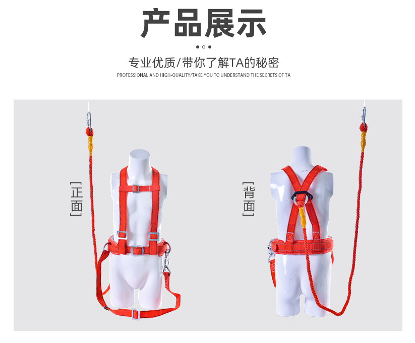 用途:是作业人员在高处作业时佩戴的,防止人员从高处坠落,避免减少作业人员受坠落伤害。