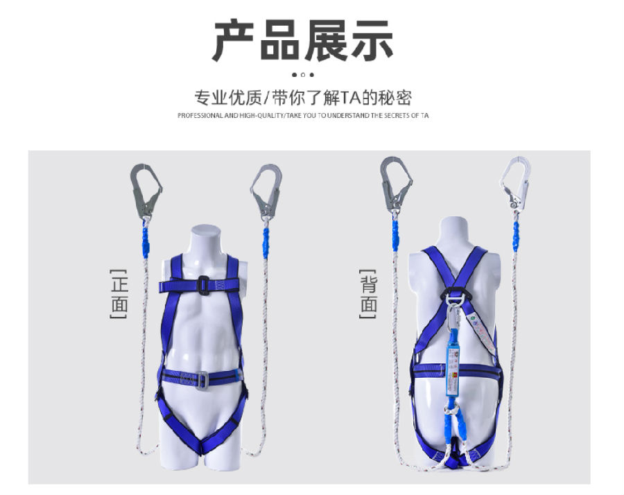 用途:是作业人员在高处作业时佩戴的,防止人员从高处坠落,避免,减少作业人员受坠落伤害。