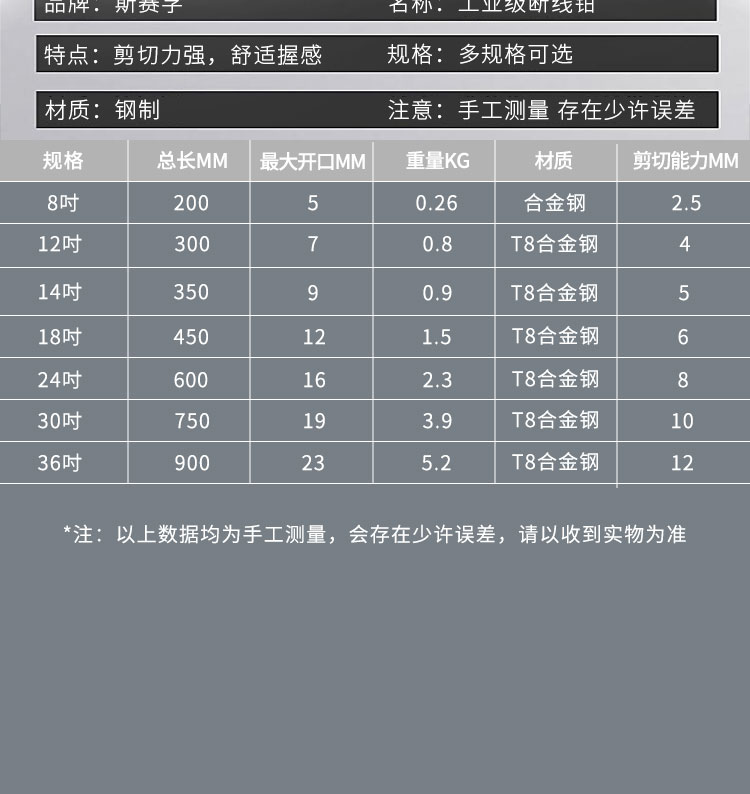 SF-D系列 断线钳 钢筋剪 大力钳