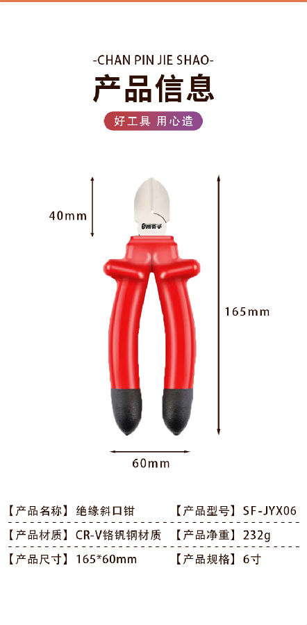 SF-JYX06 铬钒钢材质绝缘斜口钳 斜嘴钳 偏口钳