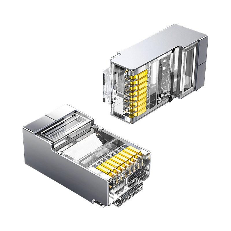 SF-6RJ45 超六类 RJ45 镀金 FTP 屏蔽千兆水晶头 8p8c铁壳网线网络连接头