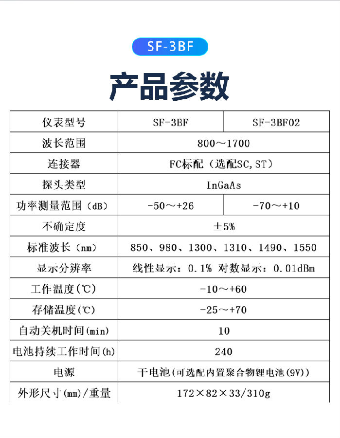 1、用于测试光功率,光纤及光器件损耗,光纤线路故障。